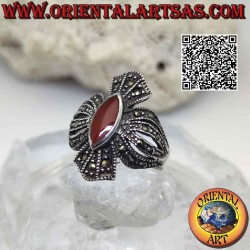 La pierre principale est une cornaline naturelle et une série de marcassites sont serties autour d'elle.