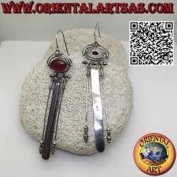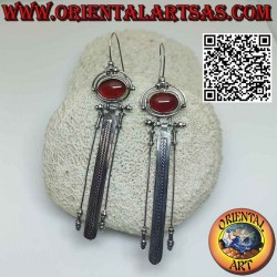 Boucles d'oreilles avec une grande cornaline ovale et trois longs pendentifs faits à la main en Indonésie, en argent hypoallergénique 925 ‰ par des artisans qualifiés.
