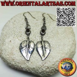Boucles d'oreilles en argent, avec cornaline ovale et pendentif feuille en forme de coeur