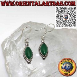Boucles d'oreilles en argent avec agate navette verte entourée de tresse, la surface est partiellement brunie et n'est ni traitée ni plaquée donc elle garantit sa beauté au fil des années, avec sertie d'agate verte.