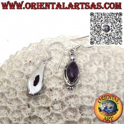 Boucles d'oreilles en argent avec une navette cabochon d'améthyste entourée d'une tresse