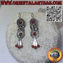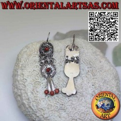 Boucles d'oreilles anciennes népalaises en argent faites à la main avec filigrane et quatre coraux, faites à la main en argent massif hypoallergénique 925 ‰. La surface est partiellement brunie pour mettre en valeur le travail et assurer sa beauté au fil des ans. Sans nickel, pièce unique