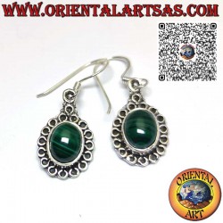 Boucles d'oreilles pendantes en argent serties de malachites ovales naturelles, en argent 925 ‰ hypoallergénique. La surface est partiellement brunie pour mettre en valeur le travail et garantir sa beauté au fil des années. (la boucle d'oreille n'est ni traitée ni plaquée mais en argent massif) sans nickel