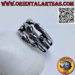 Bague en argent avec quatre rangées de serpents en forme