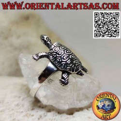 Bague en forme de tortue avec coquillage gravé, en argent 925‰ hypoallergénique sans nickel. La surface est partiellement brunie et n'est pas plaquée, assurant ainsi sa beauté au fil des ans.