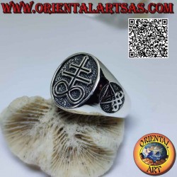 Bague en argent 925‰ hypoallergénique. La surface est partiellement brunie pour mettre en valeur la décoration, et elle n'est ni traitée ni plaquée afin de garantir sa beauté au fil des ans.