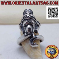 Bague en argent en forme de tête de Ganesh avec syllabe sanskrite "ॐ" Oṃ sur le front