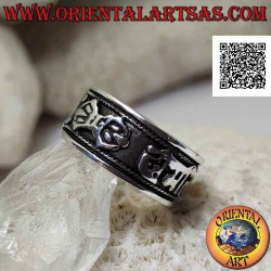 Bague en argent avec mantra tibétain OM MANI PADME HUM en relief (taille libre)