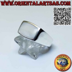 Bague simple lisse en argent avec nacre rectangulaire transversale