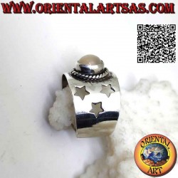Bague en argent avec pierre de lune cabochon ovale et étoiles percées