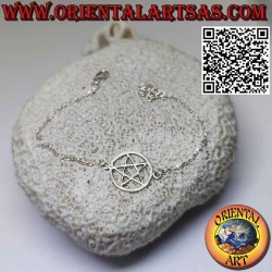 Bracelet en argent composé d'une chaîne avec un pentacle (étoile) au centre dans le cercle avec un mousqueton, taille variable de 16 à 18 cm. en argent 925 ‰ hypoallergénique. La surface est partiellement brunie pour mettre en valeur le travail et assurer sa beauté au fil des ans. Sans nickel