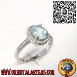 Bague en Argent 925 avec Topaze Bleue Naturelle Ovale Sertie de Zircons