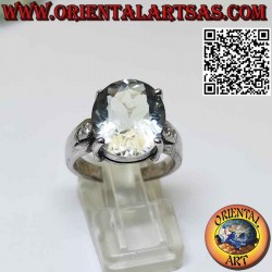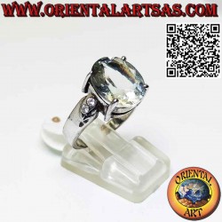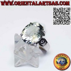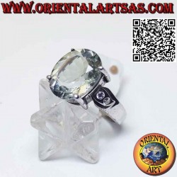 Belle bague avec Prasiolite Green Amethyst est l'une des plus belles pierres semi-précieuses vert clair avec deux zircons des deux côtés, faite à la main en argent massif hypoallergénique 925 ‰. Sans nickel, pièce unique