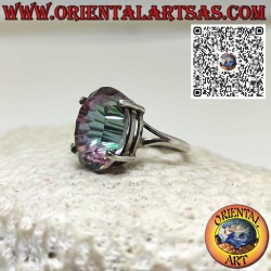 Bague octogonale en argent avec améthyste naturelle ronde parsemée...