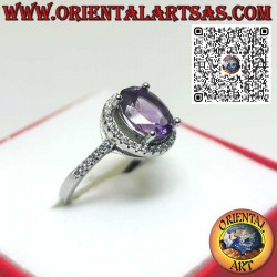 Cette bague élégante est un bijou raffiné qui attire l'attention par sa délicatesse et son éclat. Fabriquée en argent sterling 925, elle présente une magnifique améthyste naturelle taillée en rond ou en ovale, qui semble "flotter" à l'intérieur d'un cercle scintillant. Ce dernier est finement serti d'une myriade de zircons cubiques blancs (CZ), qui rehaussent sa luminosité et créent un contraste fascinant avec le violet profond de l'améthyste. Le design unique confère à la bague un aspect à la fois moderne et classique, la rendant parfaite pour toute occasion, qu'il s'agisse d'un événement spécial ou d'une touche d'élégance quotidienne.