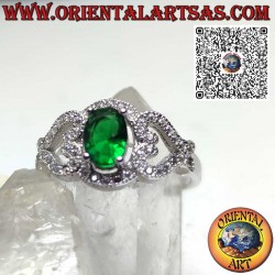 Découvrez l’élégance intemporelle de cette bague en argent 925, ornée en son centre d’une magnifique émeraude synthétique ovale. Les détails romantiques en forme de cœur sur les côtés rendent ce bijou unique et plein de signification. Le sertissage est délicatement incrusté de zircons blancs, qui apportent éclat et brillance à chaque mouvement. Parfait comme cadeau pour une personne spéciale, comme bague de fiançailles alternative ou simplement pour ajouter une touche raffinée à votre style quotidien.