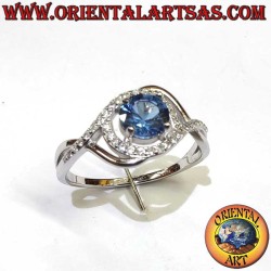 Élégante bague en Argent 925 avec un saphir synthétique rond bleu profond et une originale bordure asymétrique de zircons blancs. La disposition enveloppante des zircons autour du saphir crée un mouvement dynamique et un éclat unique. Finition rhodiée hypoallergénique. Parfaite pour ceux qui cherchent une pièce classique revisité en version moderne.