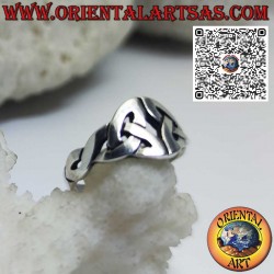 Magnifique bague en argent 925 présentant deux nœuds Triquetra (nœuds de Tirone) symétriques. Un symbole celtique ancestral d'unité, de protection et d'élégance.