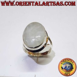 Élégante bague en Argent 925 avec une magnifique pierre de lune arc-en-ciel ovale de 13x16 mm, sertie d'une monture lisse et d'une raffinée monture en V. Symbole d'intuition, féminité et sérénité. Hauteur 19 mm, poids 5 grammes. Un bijou magique aux reflets irisés.