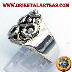 Élevez votre esprit con cette bague en argent 925 inspirante. Le design met en valeur le symbole OM (Aum), la syllabe sacrée de l'hindouisme et du bouddhisme qui représente le son primordial de l'univers. Réalisée avec un travail ajouré et une finition vieillie, ce bijou possède un caractère ancien et sacré. C'est l'accessoire idéal pour les adeptes du yoga et de la méditation, ou pour quiconque souhaite porter un talisman de sérénité.