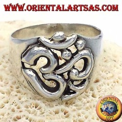 Mystique bague bandeau en argent 925 bruni. Elle arbore le symbole OM ajouré au centre, emblème universel de paix intérieure et d'harmonie.