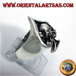 Puissante bague en Argent 925 représentant l'As de Pique avec crâne en haut-relief, symbole de pouvoir, de chance et de conscience. Le travail tridimensionnel met en valeur chaque détail. Hauteur 24 mm, largeur 18 mm, poids 8,6 grammes.