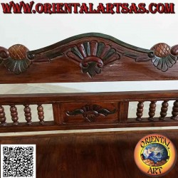 Banc avec dossier à colonnes et couronne sculptée à la main en bois de teck antique (le bois indestructible ne cause pas de vers à bois) également idéal pour les terrasses extérieures, les jardins, etc., fini et poli à la cire