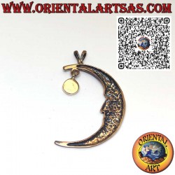 Élégant pendentif en bronze représentant une lune avec visage et une nacre naturelle. Un bijou mystique et raffiné, parfait comme amulette ou cadeau spécial.