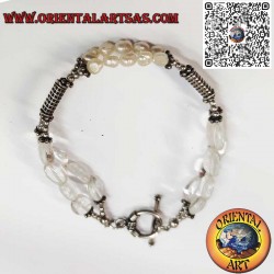 Pulsera artesanal de plata con perlas de río y cristal de roca, diseñada para aportar elegancia y brillo natural.
