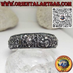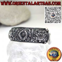 Bracelet en argent massif 925 hypoallergénique, fait à la main et ciselé des huit symboles tibétains de bon augure, est un bijou empreint de significations profondes et symboliques.