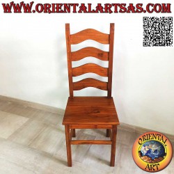 Elégante chaise en teck massif, caractérisée par un imposant dossier haut avec des lattes horizontales courbes de style impérial. Un artisanat indonésien de prestige.