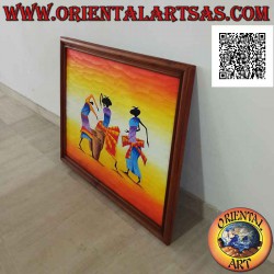 Tableau peint à la main sur bois dans le style saharien, "Groupe...