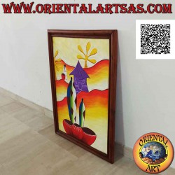Tableau peint à la main sur bois dans le style du Sahara, "Famille dans les dunes du désert"