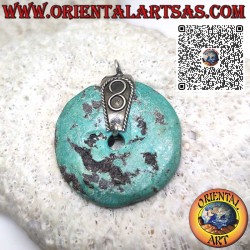 • Pendentif donut en turquoise naturelle, diamètre 32 mm, avec crochet en argent