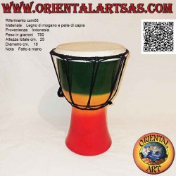 Le corps du djembé est en bois d'acajou issu de plantations durables et est entièrement composé de produits naturels.Etant fabriqué par de petits artisans dans les conditions les plus simples (pas un produit industriel), de légères variations de couleur du bois/cuir ne peuvent être évitées, ainsi que des irrégularités naturelles et de légères différences de couleur.