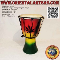 Le corps du djembé est en bois d'acajou issu de plantations durables et est entièrement composé de produits naturels.Etant fabriqué par de petits artisans dans les conditions les plus simples (pas un produit industriel), de légères variations de couleur du bois/cuir ne peuvent être évitées, ainsi que des irrégularités naturelles et de légères différences de couleur.