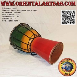 Le corps du djembé est en bois d'acajou issu de plantations durables et est entièrement composé de produits naturels.Etant fabriqué par de petits artisans dans les conditions les plus simples (pas un produit industriel), de légères variations de couleur du bois/cuir ne peuvent être évitées, ainsi que des irrégularités naturelles et de légères différences de couleur.