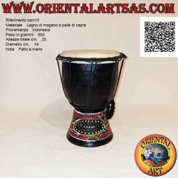 Le corps du djembé est en bois d'acajou issu de plantations durables et est entièrement composé de produits naturels.Etant fabriqué par de petits artisans dans les conditions les plus simples (pas un produit industriel), de légères variations de couleur du bois/cuir ne peuvent être évitées, ainsi que des irrégularités naturelles et de légères différences de couleur.