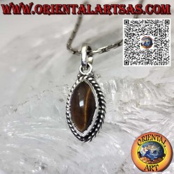 Pendentif en argent avec un oeil de tigre navette entouré de sphères