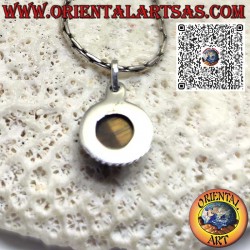 Le pendentif est en argent 925 hypoallergénique, de forme ronde. Un oeil de tigre est serti au centre du pendentif, une pierre précieuse de couleur dorée avec des stries rappelant l'oeil de tigre.