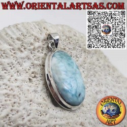 Magnifique pendentif en argent orné d’un grand cabochon ovale de larimar naturel. Appelé la pierre des Caraïbes, le larimar est rare et apprécié pour ses nuances bleues rappelant la mer tropicale.