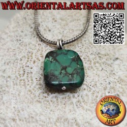 • Pendentif protecteur de turquoise tibétaine ancienne avec crochet en argent