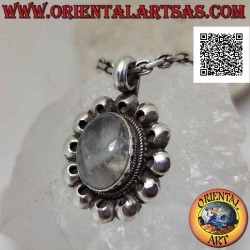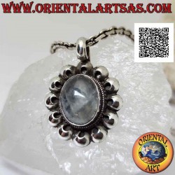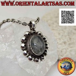 Pendentif en argent avec labradorite ovale entourée de disques perforés