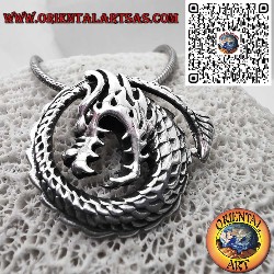 Puissante amulette en Argent 925 avec un dragon en position dynamique, s'enroulant pour former une spirale. Symbole de puissance cosmique, de sagesse éternelle et de protection. Un bijou à fort impact mythologique.