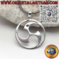 Pendentif en argent finement travaillé représentant le Tomoe dans le cercle, ancien symbole japonais lié au Shintoïsme.