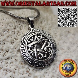 Pendentif Pagan Star Pentacle avec inscriptions Spiritus Aura Caminus Aqua. Fabriqué en argent 925 ‰ hypoallergénique. La surface est partiellement brunie pour mettre en valeur le travail et garantir sa beauté au fil des années. (le pendentif n'est pas plaqué mais en argent massif) sans nickel