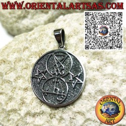 Pendentif artisanal en argent sterling 925 représentant le sceau de Satan et Lilith, deux symboles puissants de la tradition ésotérique et occulte moderne. Lilith, archétype de la liberté et de la force féminine, s’unit au sceau de Satan, emblème de rébellion et de puissance spirituelle, formant un talisman riche de sens.