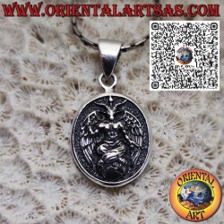 Ce pendentif en argent sterling 925 représente le Baphomet, puissant symbole ésotérique d’équilibre, de connaissance et de mystère. Réalisé sous forme de médaille circulaire avec des détails finement gravés, il incarne la dualité éternelle entre lumière et ombre, bien et mal, masculin et féminin.