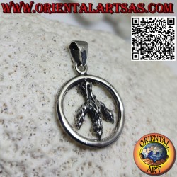Pendentif en argent représentant une griffe d'aigle royal dans le cercle. Fabriqué par des artisans qualifiés selon une technique ancienne de la cire perdue en argent massif hypoallergénique sans nickel 925 ‰. La surface est en partie brunie, ce qui garantit sa beauté au fil des années. (Elle n'est pas apaisée)