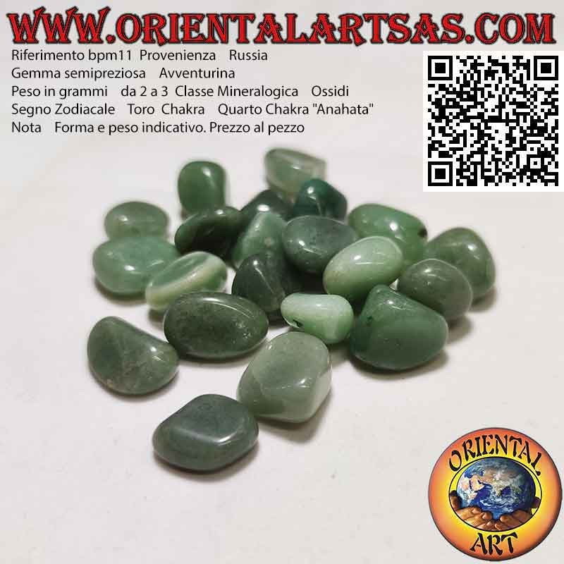 L'aventurine, appartenant au groupe des quartz à système cristallin trigolane, est une pierre vert vif. Les éléments qui lui sont reliés sont l'eau et l'air. Une pierre qui incarne la plus haute expression de la féminité et de l'intellect, compris à la fois comme la compassion, l'amour, la créativité et la capacité de donner vie à ses idées.